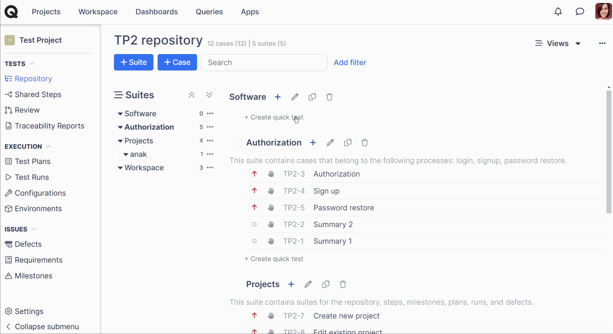 Modern test management looks different. Test cases are shorter, more focused, and built to be reused across different contexts rather than rewritten from scratch each time. The emphasis has shifted from documenting everything to capturing what actually matters: the critical paths, the high-risk areas, the scenarios that can't afford to be missed. That shift makes test management something teams can keep up with, rather than something they are always falling behind on.
